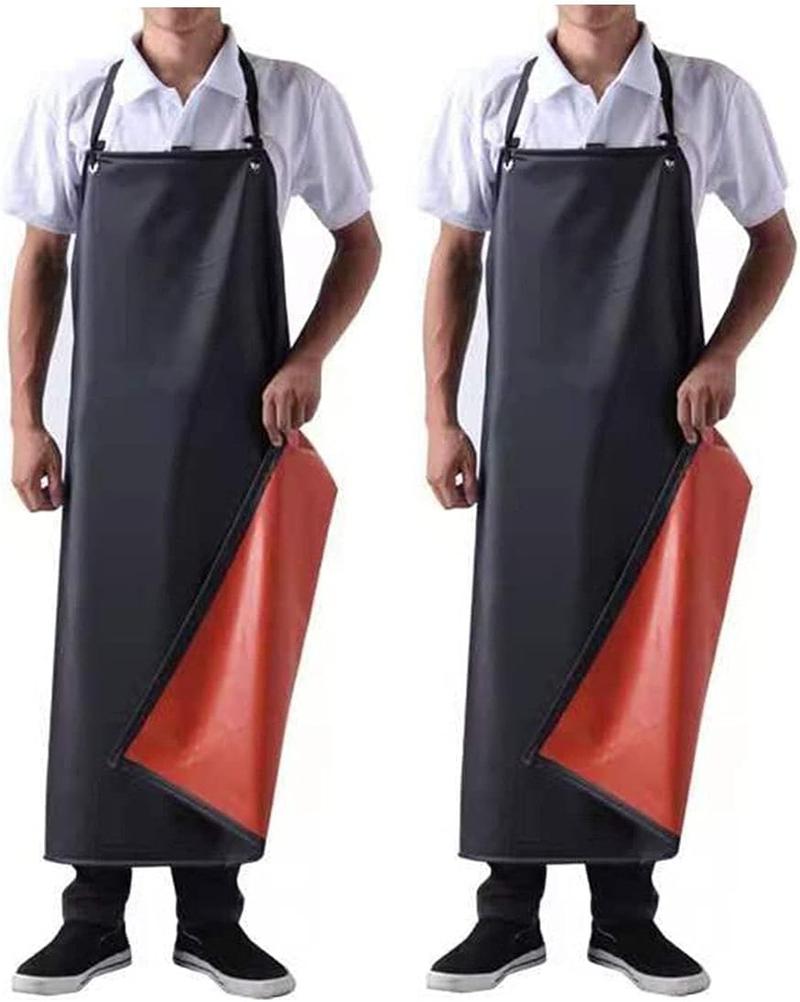紅底黑面防水膠圍裙, 43"長