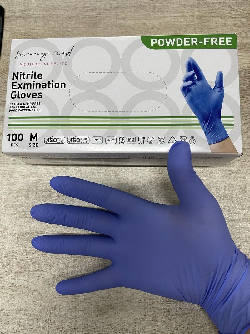 Nitrile Exmination Gloves Powder-free, size M 無粉丁腈手套, 中碼(100pcs/盒)